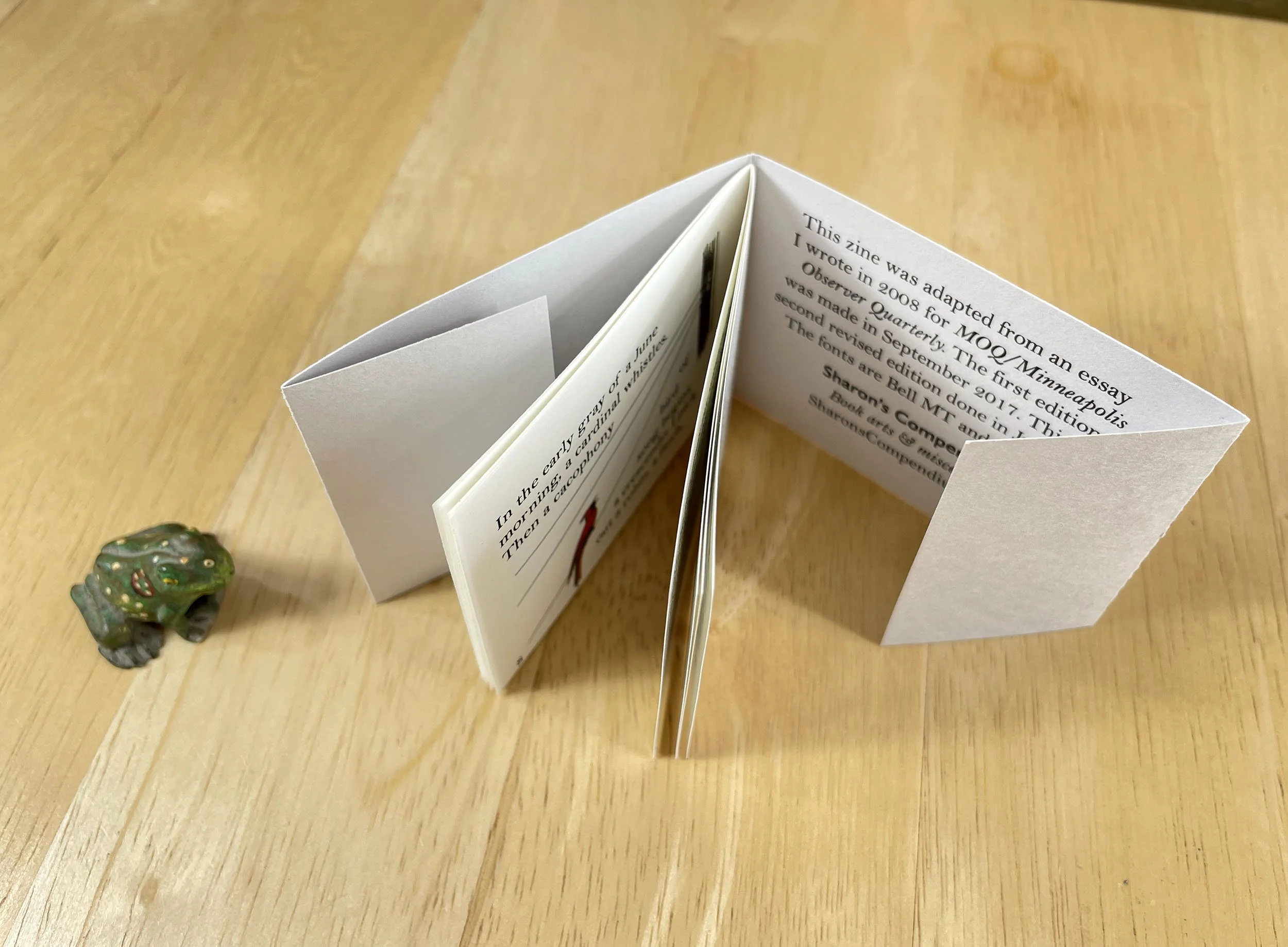 Then the toner is delivered two days earlier than expected. Yay! I get right to work printing one of my more colorful little zines, Mary’s Secret Letters. I print a batch of six and sit down to assemble them. But what’s this? Am I wearing the wrong glasses? This text is blurry!