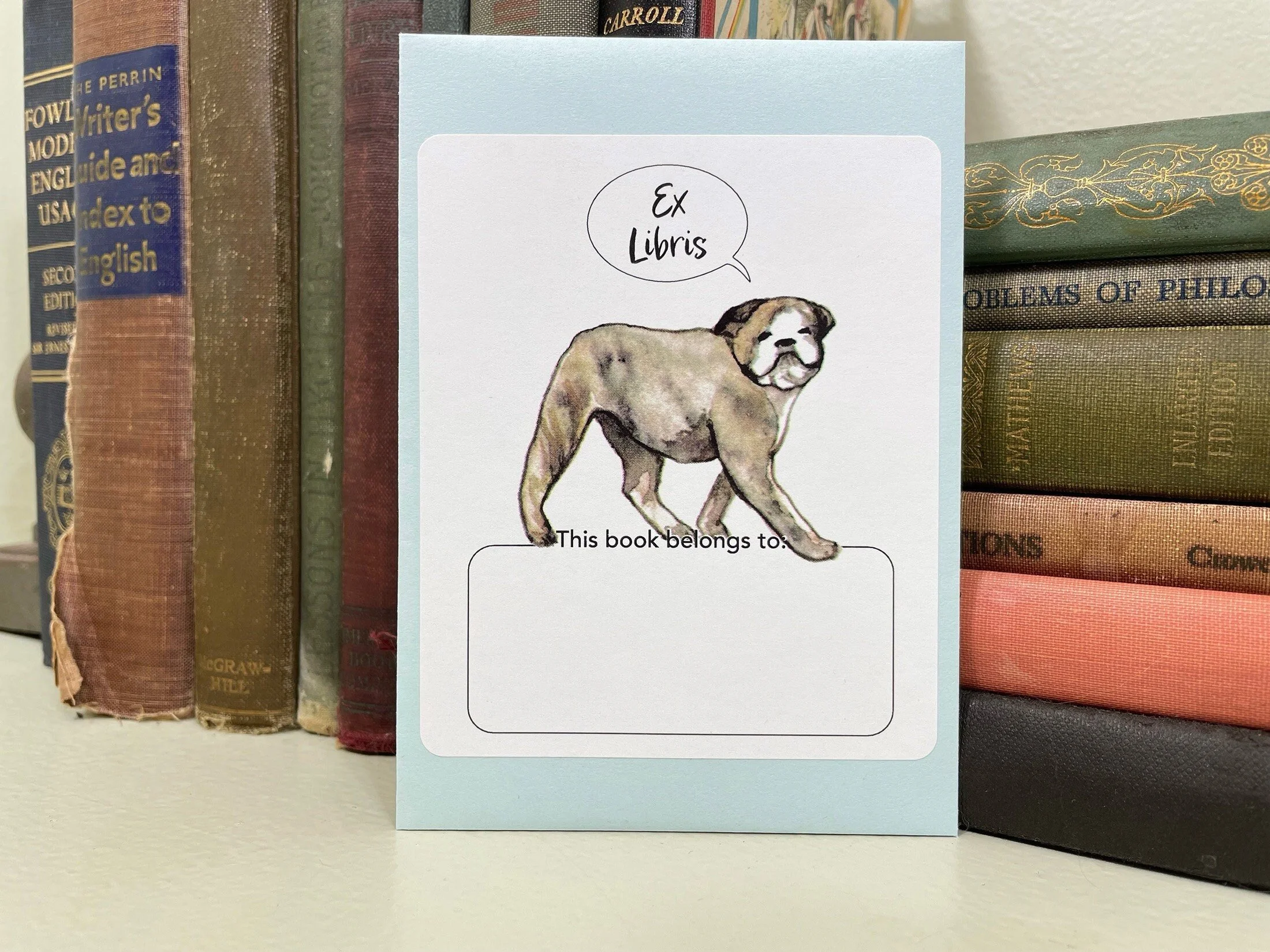 This no-nonsense bulldog will remind people to whom this book belongs. You can have it saying the traditional "Ex Libris" or opt for "My Book." The box under its feet where you can write your name and other info says "This book belongs to."